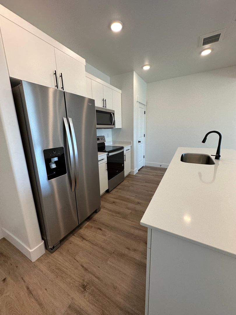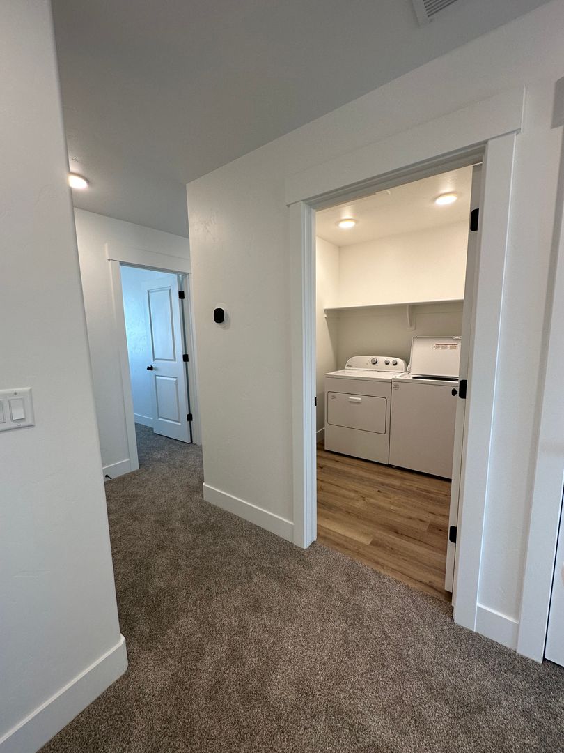 Come home to a luxury townhome featuring high end standard finishes including granite countertops, tile backsplash, and beautiful cabinets. Take advantage of the unique whirlpool appliance package including a double-door refrigerator with a water dispenser, electric stove, two-drawer dishwasher, and microwave. Oversized two car garage, makes for ease and comfort. This ideal open plan with expansive feel and flow + three bedrooms on the top level, make this home pleasant and warm. Enjoy a private master bedroom & bath separated from the two guest bedrooms and bathroom. Underneath the stairs you will find storage. Nestled in one of the most desirable communities in Rexburg, you will have access to the most amazing amenities such as a clubhouse with an indoor pool, fitness center, outdoor recreational activities and more! Washer and dryer included!