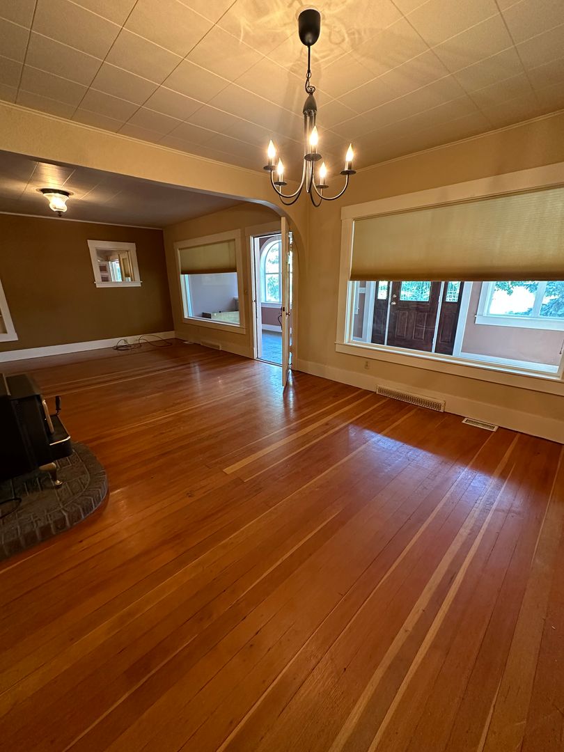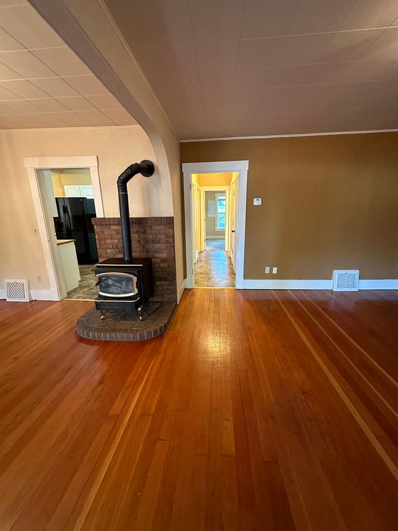 This stunning 3-bedroom, 2-bathroom home offers a perfect blend of classic charm and modern updates. As you enter through the enclosed porch, you'll be greeted by original hardwood floors in the living and dining rooms, with abundant natural light streaming through windows on every side. The kitchen is spacious and designed to meet all your cooking and prep needs.