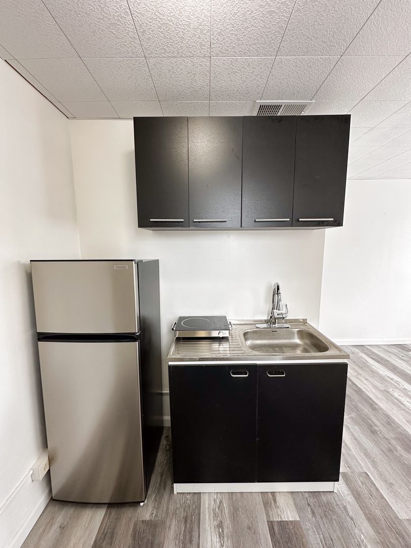 This cozy studio has had recent upgrades and is ready for its next tenant! The unit comes equipped with a single countertop burner and fridge, and electricity, water, sewer, and garbage are all included in the rent. Tenants are responsible for their own internet if desired.
